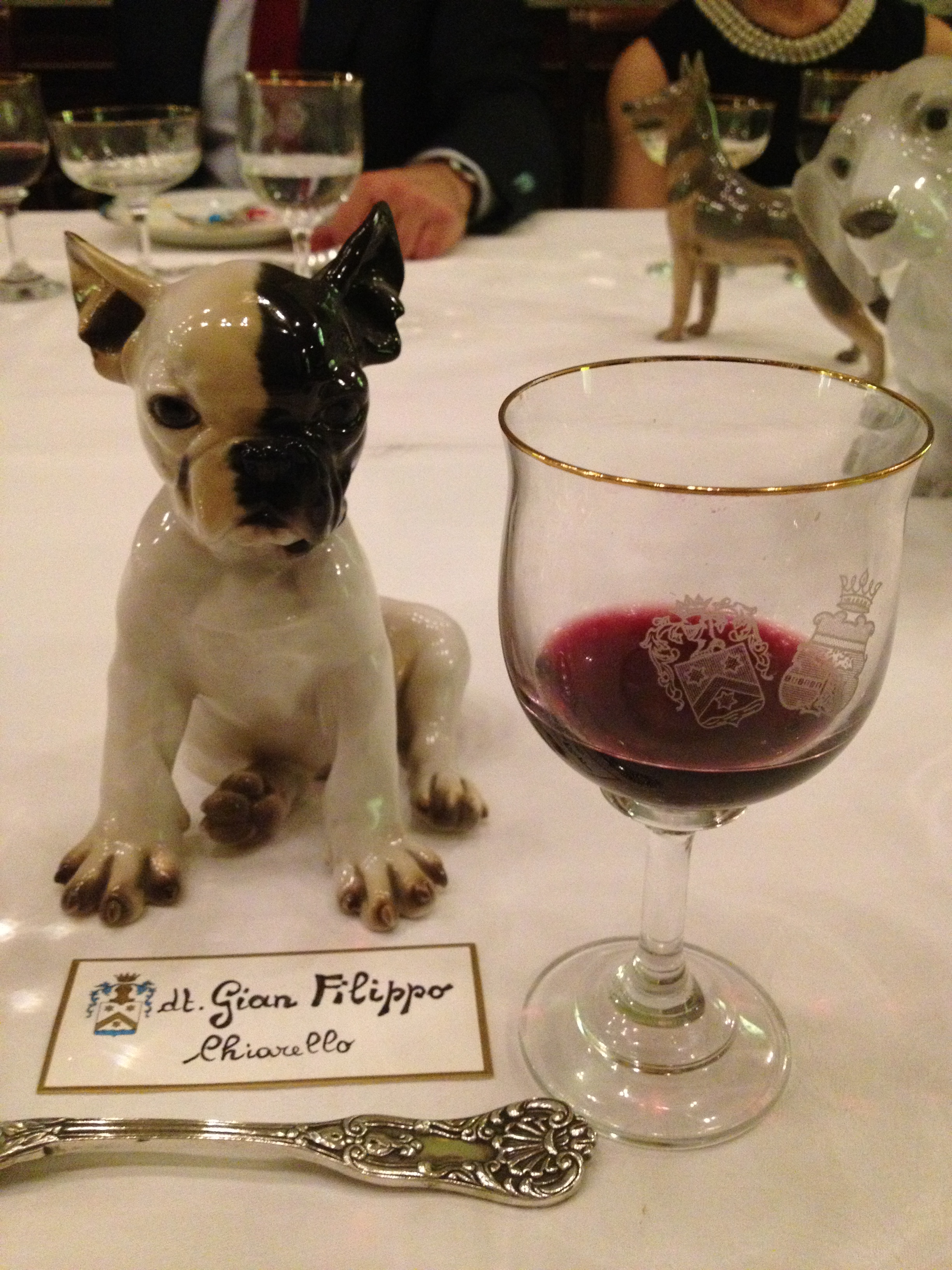 e delicati cagnolini segnaposto in porcellana di biscuit.