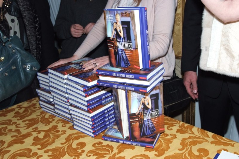 Durante la serata si sono susseguite letture di alcuni pezzi del libro, suonate di Sax, canti del Tenore Sergio Panaja, la consegna di una doll creata in esclusiva da Alessandro Gatti e Giuseppe De Bellis della Artist Creations, fatta interamente a mano, sia nella riproduzione dell’abito che la Marchesa indossa nella copertina del libro, che nei gioielli fatti con Swarovski. Questi due artisti prima della Marchesa hanno confezionato le loro dolls per icone del calibro di Sharon Stone, Madonna, Patti Pravo, Julia Roberts.