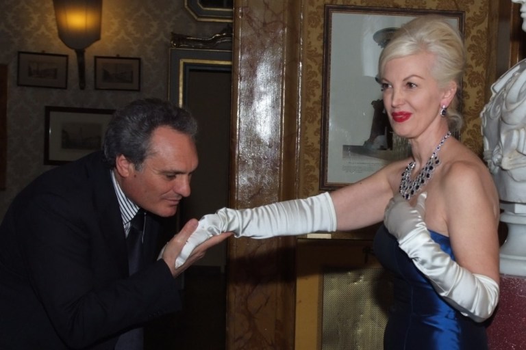 Accorsi all’evento oltre 800 persone, nelle eleganti sale del Palazzo del ‘fratello’ il Marchese Giuseppe Ferrajoli che affaccia su Piazza Colonna.