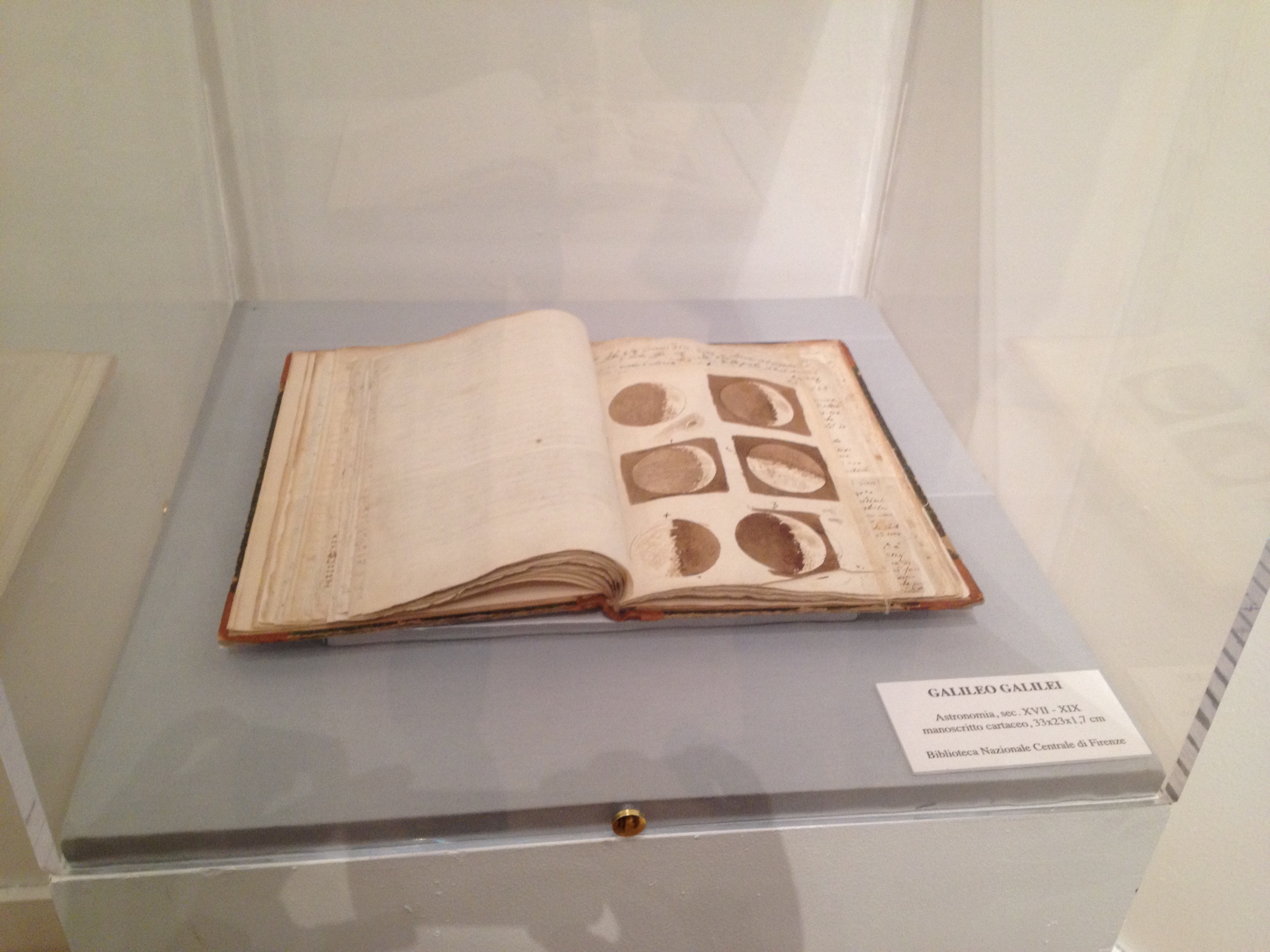 Per l’occasione la Biblioteca Nazionale Centrale di Firenze, contenitore e narratrice tramite la produzione editoriale italiana della vita culturale Nazionale, ha concesso per l’esposizione un documento inestimabile: Sidereus Nuncius, un manoscritto autografo del 1610 nel quale Galileo Galilei illustra i suoi studi e le sue sensazionali scoperte copernicane. Grazie all’uso del telescopio con lenti di sua invenzione, trova dei fenomeni celesti sconosciuti ad occhio nudo ed ai suoi predecessori: miriadi di stelle fisse, la vera natura della Via Lattea, l’esistenza dei pianeti di Giove, e l’aspetto della superficie della Luna.