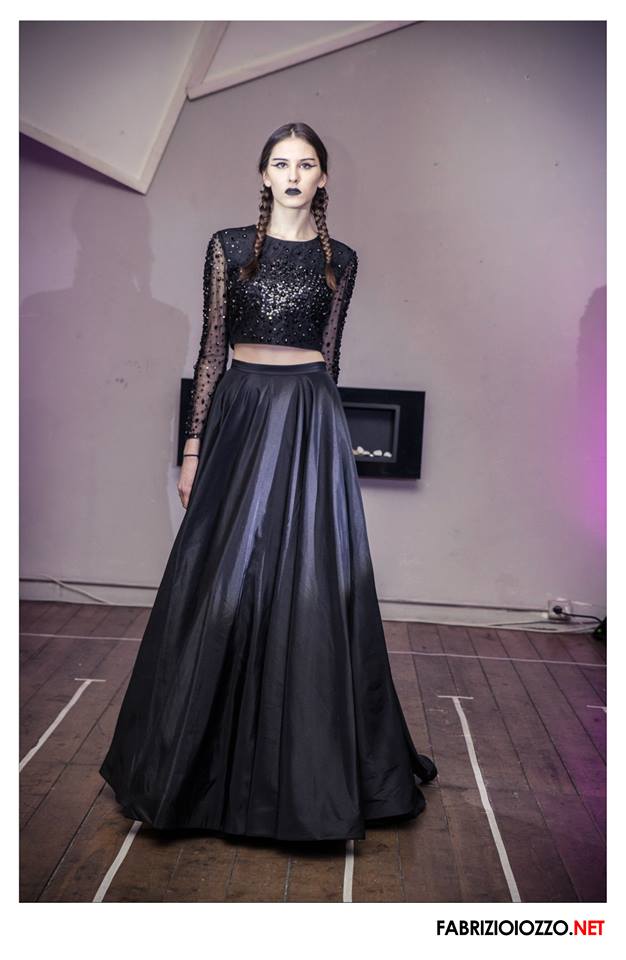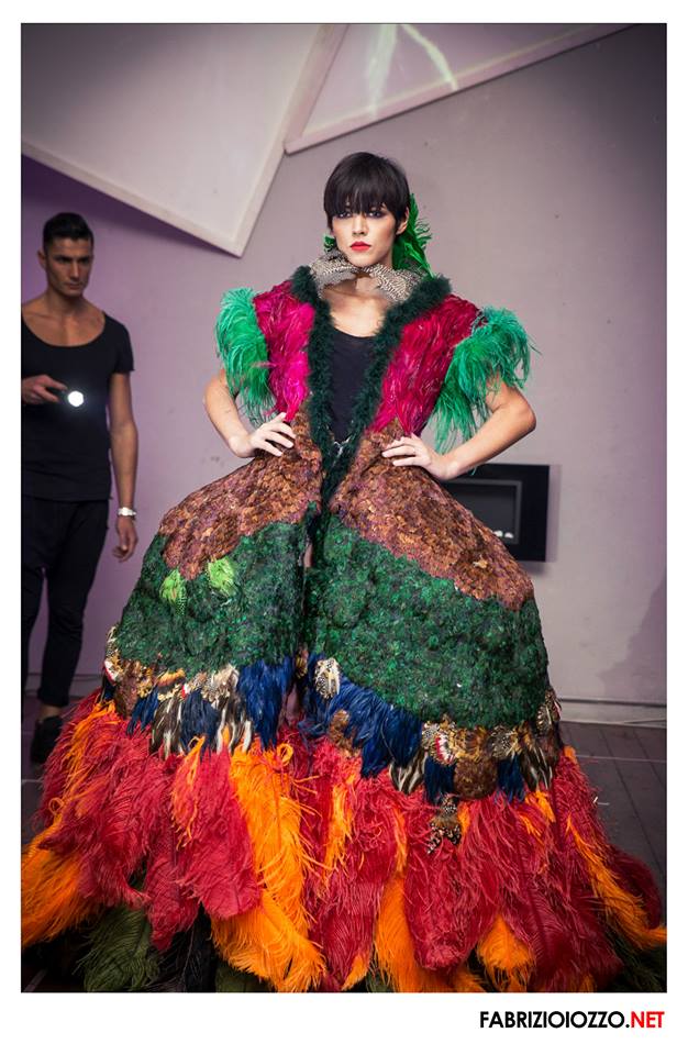 Tra le energie che hanno dato vita a questo evento, Iuliana Mihai, Stulic, Angostura, Mia b., Paolè, MartaCo, Daniele Pacchiarotti, Juice, Clybo, Andro e Shine, la mia attenzione è stata catalizzata dalle straordinarie creazioni di Iuliana Mihai, che questa volta ha portato in passerella delle dark-ladies e concluso con un abito interamente fatto di piume, la cui lavorazione a mano ha richiesto una intera settimana.