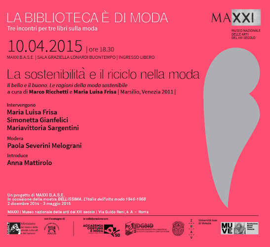 Secondo appuntamento venerdì 10 aprile alle ore 18.30 (MAXXI B.A.S.E. ingresso libero fino a esaurimento posti) con l’incontro LA SOSTENIBILITÀ E IL RICICLO NELLA MODA.